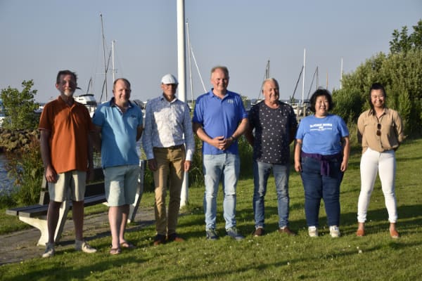 Op de foto v.l.n.r. Arjan Schellinkhout, Jolmer Nieuwkerk, Taco Reitsma, Bert Bremer, Jan Wever, Heidi de Jong en Sureerat Ruenroeng.